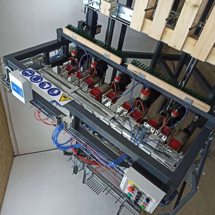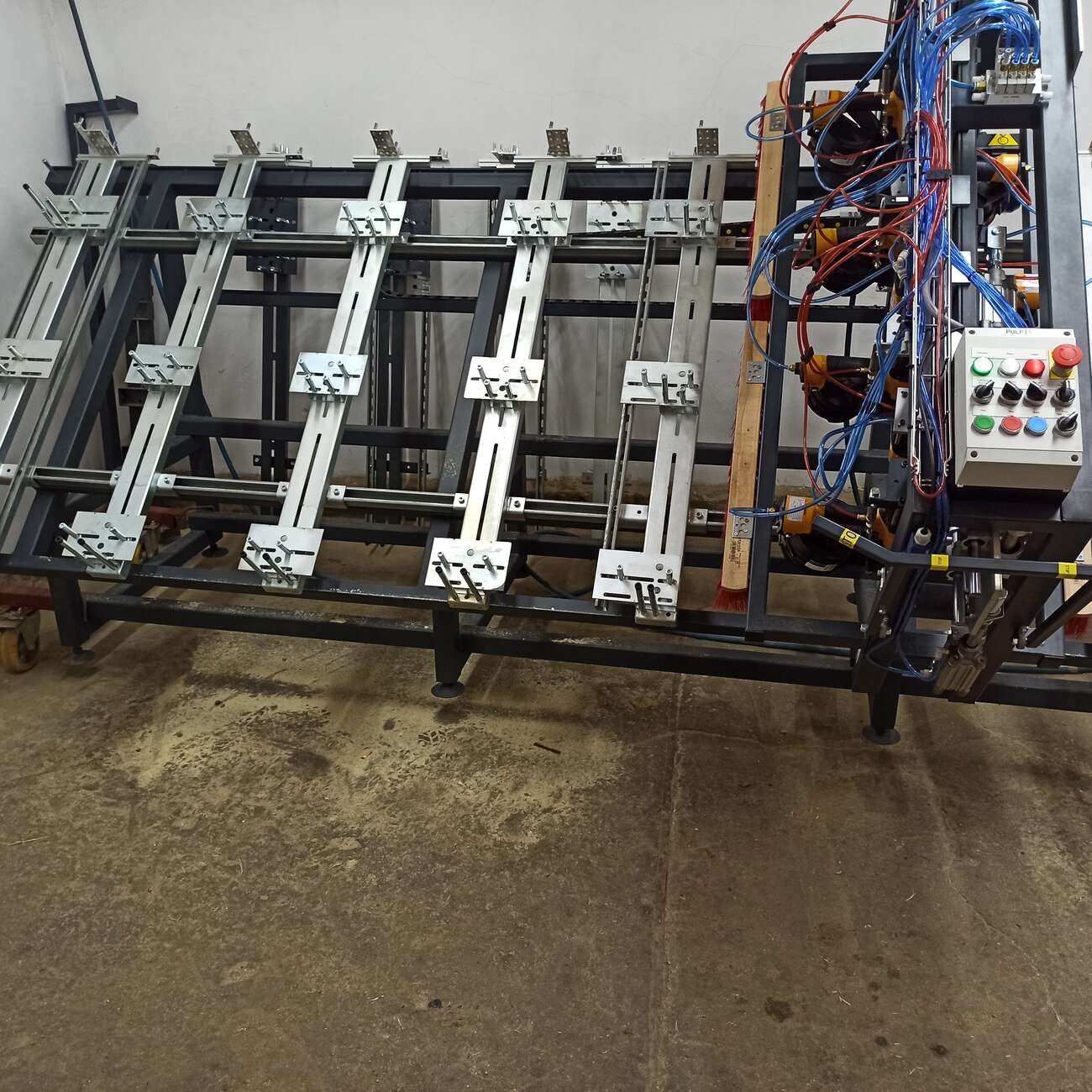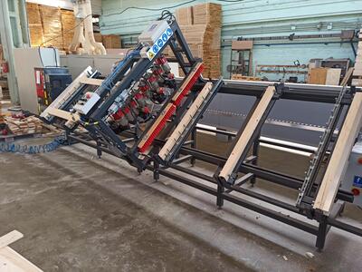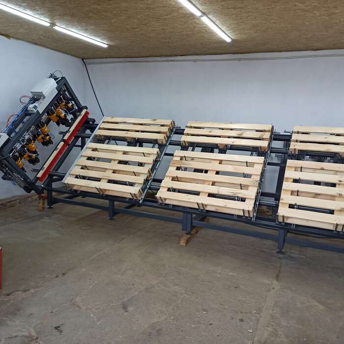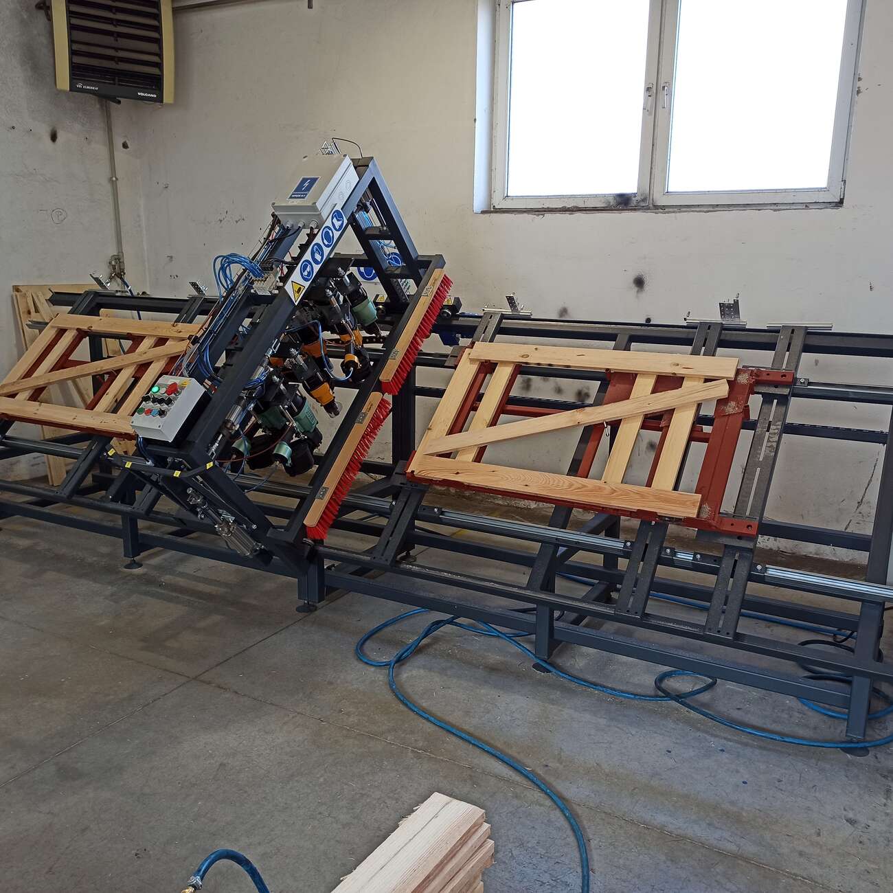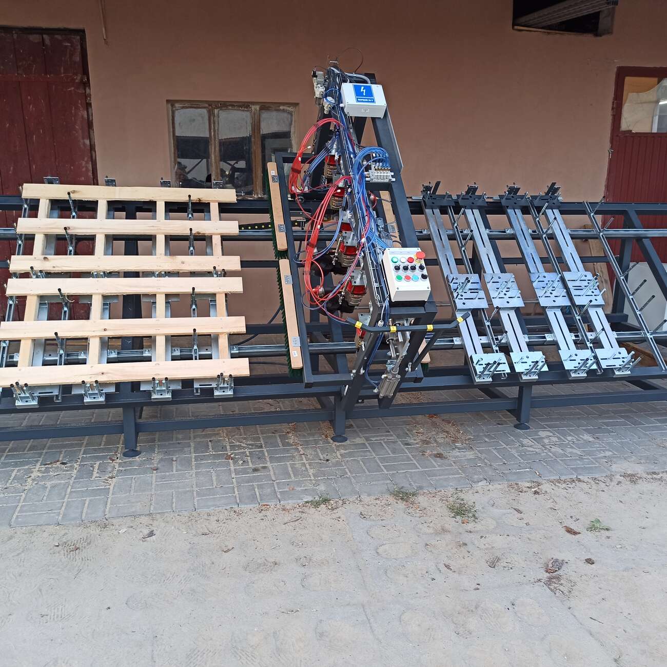 Zbijarka składa się z dwóch stołów roboczych. Na jednym stole można układać deski a na drugim stole jest zbijana paleta. Taki układ pozwala na wykorzystanie w 100% urządzenia.
